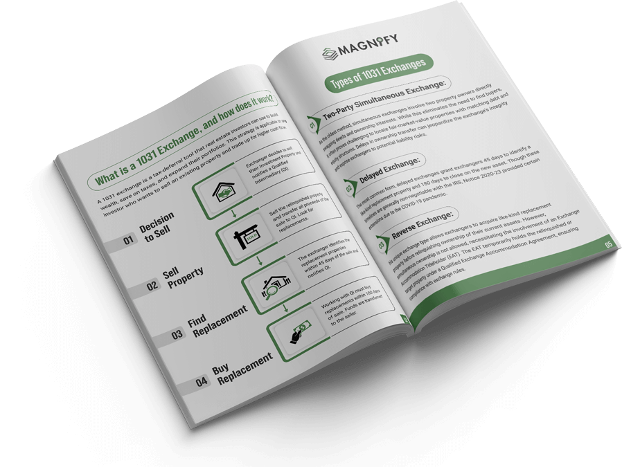 In "The Power of 1031 Exchanges" eBook, we delve deep into tax-deferral strategies and how 1031 exchanges can help you achieve your financial goals. Whether you're a seasoned investor or just starting in the real estate market, this comprehensive guide will provide valuable insights, real-life examples, and step-by-step instructions to leverage the potential of 1031 exchanges effectively."
